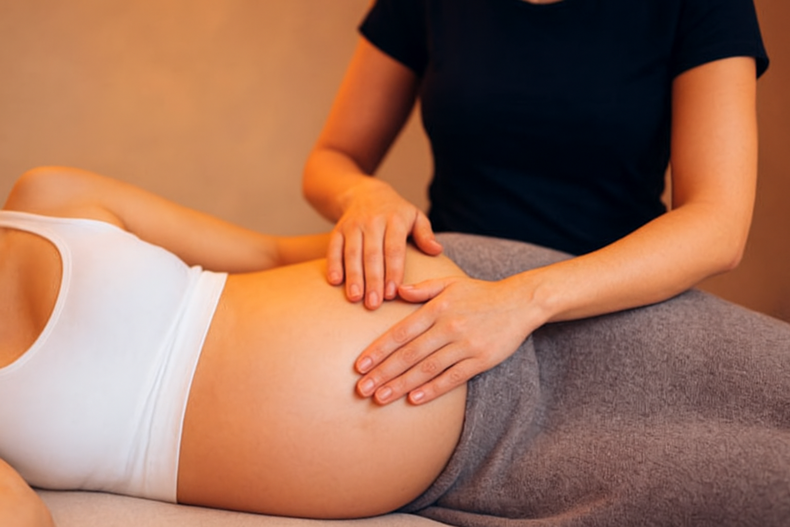 Ce soin améliore également la circulation sanguine et lymphatique, contribue à diminuer les œdèmes et la rétention d’eau, et offre un véritable moment de bien-être, renforçant aussi la connexion avec le bébé. »